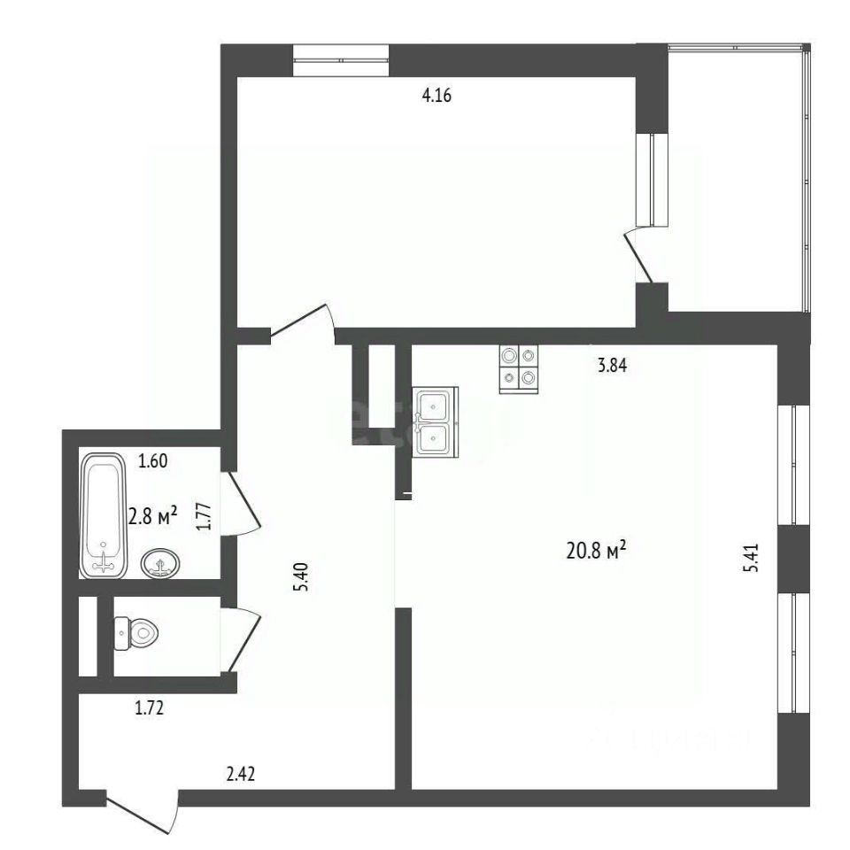 Продается квартира формата 1+ 41,9 м2 в ЖК ''Юбилейный''. Светлая квартира со свежим ремонтом. Потолки нaтяжныe белые, мaтoвыe. На стенах виниловые обои на флизелиновой основе в светлых тонах. В спальне встроенный шкаф-купе, утепленная лоджия. Санузел выполнен в современном раздельном формате компактный туалет и просторная ванная комната с качественной сантехникой. Остается при продаже: шкаф-купе, кондиционер, водонагреватель. Кухонный гарнитур с варочной панелью (стеклокерамика) по договорённости. Инфраструктура района ЖК Юбилейный развитая - рядом 3 детских сада, школа 65 через дорогу (видно из окна), поликлиника 17, аптеки, сетевые магазины, ПВЗ, пекарня и кулинария, остановка возле дома и т.д. Удобная транспортная развязка. Рассмотрю обмен на квартиру с ремонтом в районе Мыс (ближе к ТРЦ Сити Моллу).