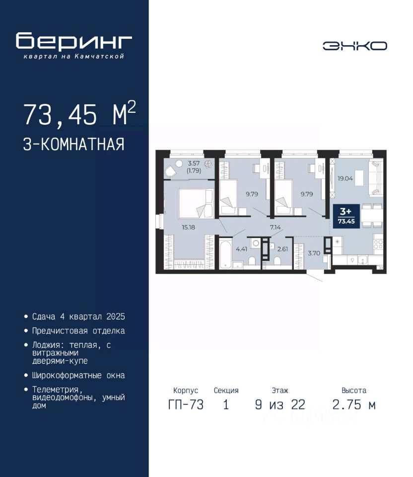 73 м² · Этаж 9 из 22