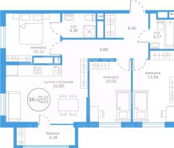 Дом на берегу Туры — это современный 25-этажный дом с панорамным видом на реку, встроенным паркингом и благоустроенной эксплуатируемой кровлей, сочетающий жизнь вблизи центра города и уединения с природой. Дом расположился на первой линии реки в одном из самых живописных районов города. В шаговой доступности находится остановка общественного транспорта и сетевой супермаркет.Просторная трёхкомнатная квартира 65.07 кв.м на 20 этаже. Светлые комнаты, удобная планировка и уютная атмосфера создают пространство для жизни. Место притяжения для всей семьи - кухня-гостиная, где комфортно проводить время с семьей или принимать гостей.