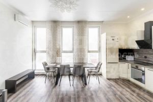Арт. 127004970 Продаётся замечательная евро-трёхкомнатная квартира в ЖК ''Скандиа. Квартал у реки''.В жилом комплексе есть всё для жизни. ПВЗ, магазин ''Пятёрочка'', комфортный закрытый двор. Добраться до центра города на машине можно за 5-7 минут, на общественном транспорте 12-15 минут. Идеальная для комфортной жизни планировка позволит вам воплотить в жизнь мечту об уюте, красивом виде из окон и наличии двух комфортных спален. Два санузла и просторная кухня-гостиная, светлая отделка и возможность использовать разные сценарии освещения. В квартире качественный дизайнерский ремонт, вся мебель и техника остаётся. В квартире 9 окон: 6 узких в пол и 3 широких 70 см от пола. Не упустите квартиру своей мечты и звоните нам!