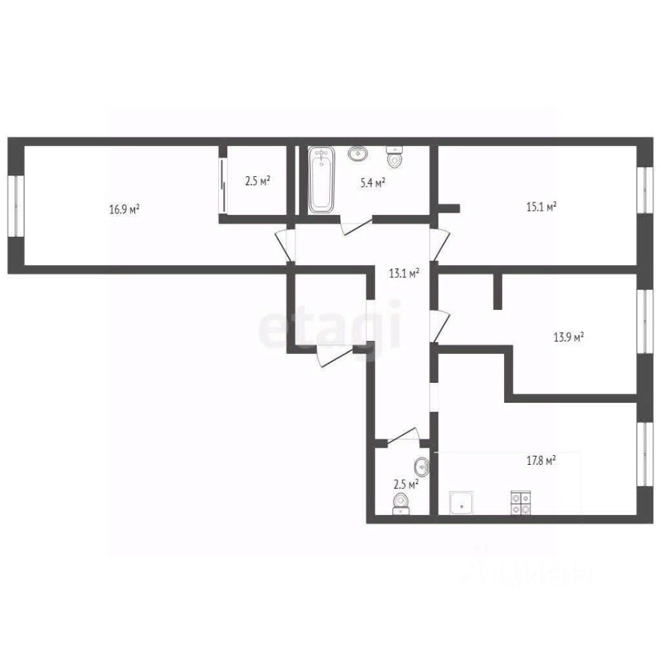 74 м² · Этаж 11 из 17