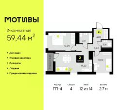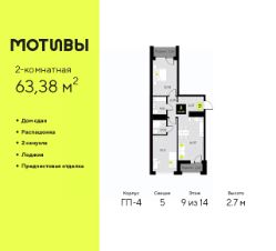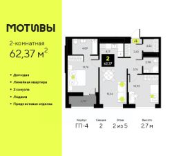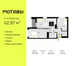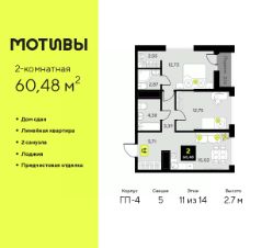 Продается 2-комн. квартира с предчистовой отделкой в ЖК ''Мотивы'' на 11 этаже. Общая площадь: 60.48 кв.м., жилая: 25.48 кв.м., площадь просторной кухни-столовой: 15.02 кв.м. Комнаты изолированные, все окна выходят на одну сторону. В квартире одна лоджия, два совмещенных санузла. Высота потолков 2.7 м. Квартира будет сдаваться с предчистовой отделкой White Box: выровнены и оштукатурены стены, проведено электричество и отопление, установлены радиаторы. Вы также можете приобрести квартиру с ремонтом от застройщика, представленным в трех цветовых решениях Scandi, Wood и Coffee и включающим ламинат, обои под покраску, двери, натяжной потолок и санузел с сантехникой. При желании вы можете заказать отделку под ключ, варианты возможных решений представлены в альбоме фотографий. Дом монолитный, многоподъездный, переменной этажности, от 5 до 14 этажей. Квартира находится в 5-й секции высотой 14 этажей в корпусе ГП-4. На этаже 5 квартир. В подъезде 1 пассажирский и 1 грузовой лифт. На сегодняшний день строительство завершено, дом сдан в 4 квартале 2024 года. Оформление сделки по договору купли-продажи. Закрытая от автомобилей территория, безопасный двор и камеры видеонаблюдения - гаранты вашего спокойствия. Квартал будет располагать богатой инфраструктурой: на первых этажах разместятся магазины, пекарни, кофейни, пункты выдачи, аптеки, детские центры, цветочные салоны и многое другое, что сделает жизнь поистине комфортной. Рядом находится парк общей площадью почти 5000 м², в котором располагаются локации для игр и отдыха жителей, здесь можно совершить утреннюю пробежку или прогуляться после рабочего дня. В парке есть зона воркаута с тренажерами для взрослых, игровые комплексы с горками и канатный комплекс для детей разных возрастов, качели и лавочки для отдыха, площадки для командных видов спорта и для панна-футбола. В ЖК ''Мотивы'' всё продумано до мелочей: светлые холлы входных групп, оформленные в едином стиле, просторные колясочные, лапомойки для питомцев. На территории комплекса находятся 2 8-ми этажных паркинга и более 1000 м/м на открытой парковке. Жилой комплекс находится в одном из экологически благоприятных районов Тюмени, недалеко от Плехановского бора. При этом до центра города можно добраться за 15 минут, а до международного аэропорта Рощино за 13 минут. Окончание строительства: ГП 1, 2, 3, 4 сдача до конца 2024 года, ГП 6, 7, 8 сдача 2 квартал 2026 года. #2wacBw