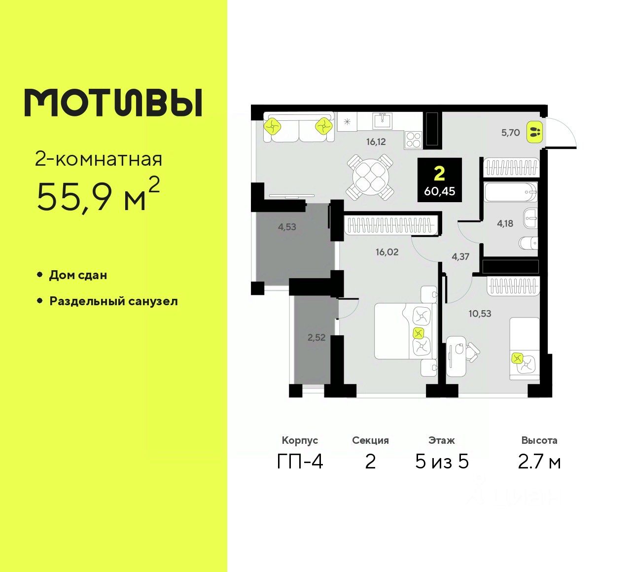 55 м² · Этаж 4 из 5