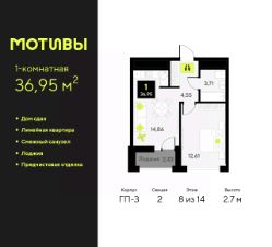 Просторная 1-комн. квартира-студия с предчистовой отделкой в ЖК ''Мотивы'' на 14 этаже. Общая площадь: 21.23 кв.м., площадь гостиной 13.29 кв.м., из которых 5 кв.м. выделено под кухонную зону. Все окна выходят на одну сторону. В квартире один балкон, один совмещенный санузел. Высота потолков 2.7 м. Квартира будет сдаваться с предчистовой отделкой White Box: выровнены и оштукатурены стены, проведено электричество и отопление, установлены радиаторы. Вы также можете приобрести квартиру с ремонтом от застройщика, представленным в трех цветовых решениях Scandi, Wood и Coffee и включающим ламинат, обои под покраску, двери, натяжной потолок и санузел с сантехникой. При желании вы можете заказать отделку под ключ, варианты возможных решений представлены в альбоме фотографий. Дом монолитный, многоподъездный, переменной этажности, от 5 до 14 этажей. Квартира находится в 4-й секции высотой 14 этажей в корпусе ГП-4. На этаже 12 квартир. В подъезде 1 пассажирский и 1 грузовой лифт. На сегодняшний день строительство окончено, дом сдан в 4 квартале 2024 года. Оформление сделки по договору купли-продажи. Закрытая от автомобилей территория, безопасный двор и камеры видеонаблюдения - гаранты вашего спокойствия. Квартал будет располагать богатой инфраструктурой: на первых этажах разместятся магазины, пекарни, кофейни, пункты выдачи, аптеки, детские центры, цветочные салоны и многое другое, что сделает жизнь поистине комфортной. Рядом находится парк общей площадью почти 5000 м², в котором располагаются локации для игр и отдыха жителей, здесь можно совершить утреннюю пробежку или прогуляться после рабочего дня. В парке есть зона воркаута с тренажерами для взрослых, игровые комплексы с горками и канатный комплекс для детей разных возрастов, качели и лавочки для отдыха, площадки для командных видов спорта и для панна-футбола. В ЖК ''Мотивы'' всё продумано до мелочей: светлые холлы входных групп, оформленные в едином стиле, просторные колясочные, лапомойки для питомцев. На территории комплекса находятся 2 8-ми этажных паркинга и более 1000 м/м на открытой парковке. Жилой комплекс находится в одном из экологически благоприятных районов Тюмени, недалеко от Плехановского бора. При этом до центра города можно добраться за 15 минут, а до международного аэропорта Рощино за 13 минут. Окончание строительства: ГП 1, 2, 3, 4 сдача до конца 2024 года, ГП 6, 7, 8 сдача 2 квартал 2026 года. #2WA79a
