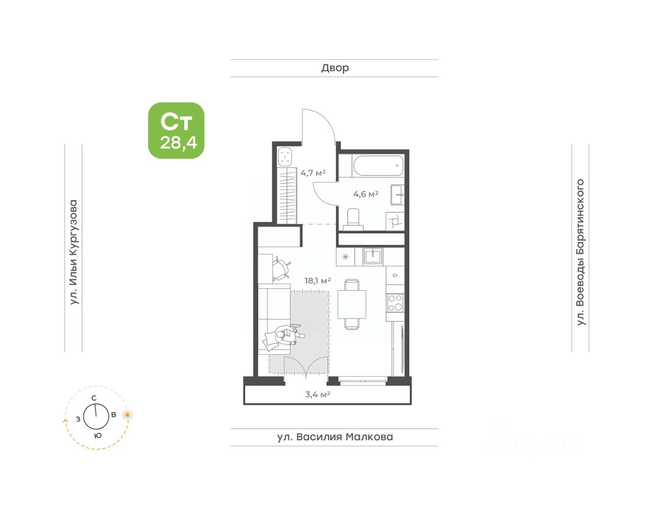 Студия отличный вариант для студентов и прогрессивной молодежи Самый популярный формат квартир! •Кухня-гостиная с двумя окнами для удобного зонирования •Просторный санузел, где вместится все необходимое •Вместительный коридор с нишей под шкаф-купе