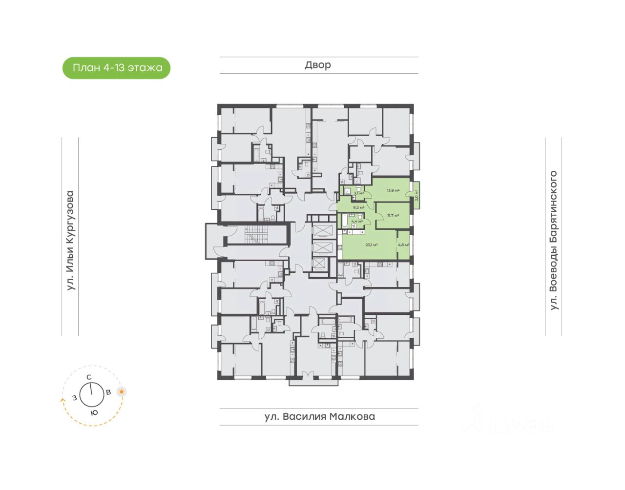 56 м² · Этаж 13 из 24