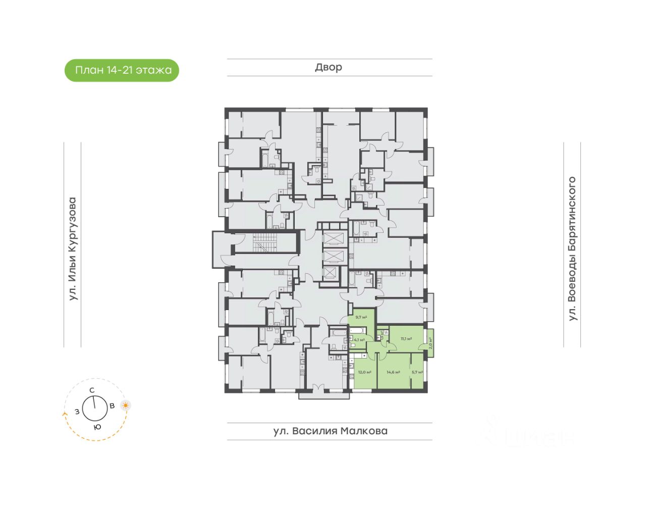 54 м² · Этаж 14 из 15
