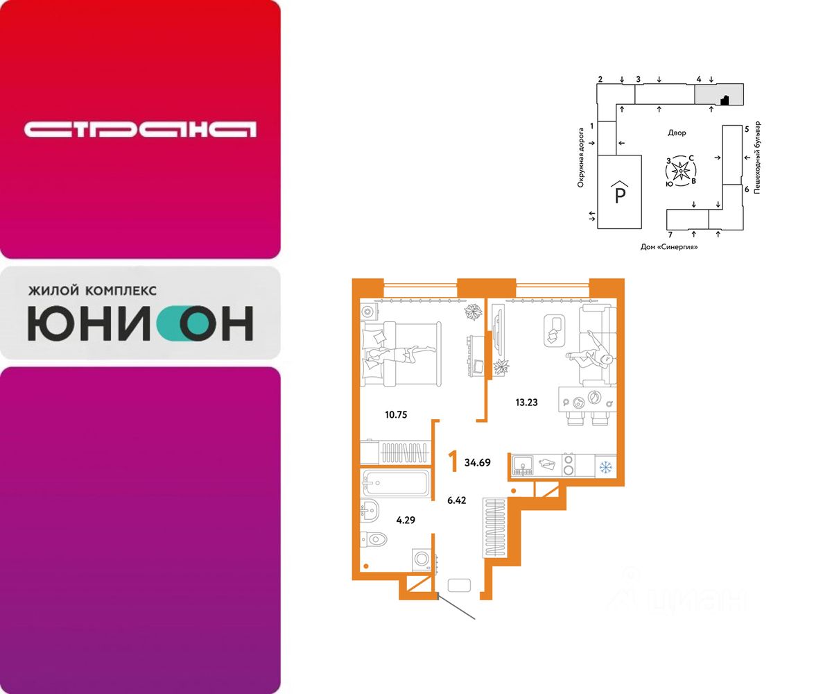 Объявление от застройщика Страна Девелопмент. Покупка квартиры защищена банком. Продается 1комнатная квартира на 16 этаже от застройщика Страна Девелопмент. Площадь квартиры 34,69 кв. м. Юнион - проект двух застройщиков всероссийского масштаба: Страны Девелопмент и Группы Эталон. Мы объединили опыт и компетенции в девелопменте, создании экологичной среды, разработке ландшафтного дизайна, коммерческой инфраструктуры и продуманных планировок. Результатом синергии станет комфортное пространство для жизни, отдыха и восстановления. Рядом два парка с хвойными и смешанными лесами — ''Затюменский'' и ''Плехановский бор''. Летом можно устраивать пикники, а зимой кататься по лыжным трассам. ОТДЕЛКА Квартиры сдаются с предчистовой отделкой. Все грязные работы выполнены: произведена разводка электричества и отопления, выполнена стяжка пола, стены выровнены ''под маяк''. В квартире установлены розетки, выключатели и радиаторы. На входе — надежная стальная дверь. Вам остается только выбрать материалы и начать ремонт Доступна опция ''Ремонт от застройщика''. Стоимость можно включить в ипотеку. Вы можете заказать один из трех цветовых вариантов: светлый, натуральный или тёмный. КУХНЯ С ТЕХНИКОЙ Теперь дополнительно к ремонту можно заказать кухню со встроенной техникой. Эргономику и функциональное наполнение разработали под каждую планировку. ПОЛНАЯ МЕБЛИРОВКА Больше не нужно тратить время даже на подбор, доставку и сборку мебели.Вы можете включить в стоимость квартиры с ремонтом полную меблировку. Что входит в меблировку? - Кухня с техникой и сантехникой - Диван - Кровать - Шкаф в спальне - Шкаф в прихожей На консультации менеджер подскажет, какие акции действуют, и как получить одобрение по ипотеке с низкой ставкой. Более подробная информация по телефону. Застройщик ООО СЗ ''Страна-Эталон''. Проектные декларации на сайте наш.дом.рф.