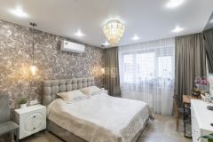Продается уютная просторная квартира с современным ремонтом2 подъезд из трёхЭтаж 9 из 15Распашонка на две стороны (солнечная) Закрытый двор Видеонаблюдение во дворе, в подъезде, в лифтах. 2 лифта (грузовой и пассажирский) Квартир на этаже 4Выполнен качественный, современный ремонт.Стены: обои Пол - ламинат высокого класса, керамогранит Потолки натяжные Фартук на кухне из керамогранита. Ванная, туалет: плиткаРядом:Школа 56 2 садика 158 кор. 3, 4Автобусная остановка рядом с домом, ходит: автобус 28,13 и маршрутка 65. Магазины, аптеки, пекарни и т. д. Всё в шаговой доступности. 1 собственник, без обременений, без детский долей. При продаже в квартире остаётся: 1. кухонный гарнитур (ещё на гарантии), 2. встроенная посудомойка,3. холодильник,4. кондиционер,5. встроенная мебель,6. стиральная машинка,7. шторы в каждой комнате (выполнены на заказ) Квартира продаётся, полностью укомплектованная с современным ремонтом, заходи и живи. Квартира не в обременении, документы готовы к продаже записывайтесь на просмотр Номер предложения: 19287.