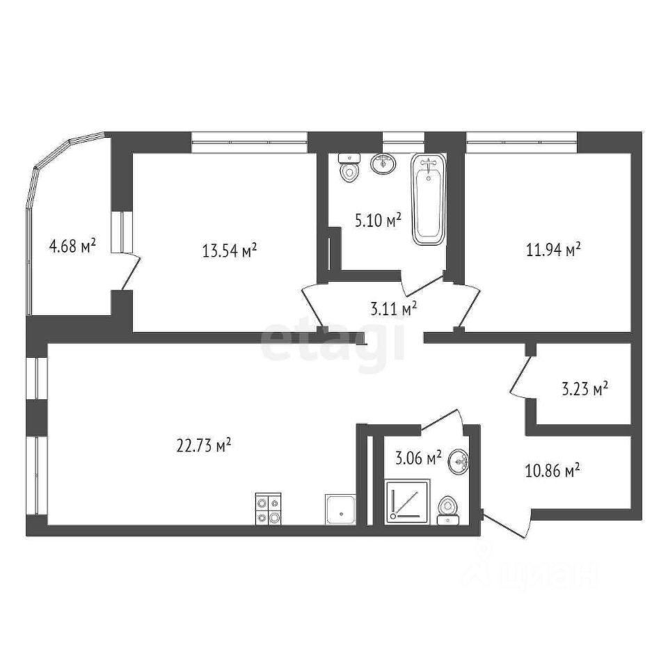 74 м² · Этаж 3 из 19