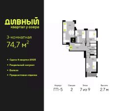 Однокомнатная квартира в ЖК ''Дивный квартал у озера'' на 6 этаже. Общая площадь: 43.2 кв.м. Высота потолков 2.7 м. Дом монолитный, черырехподъездный, переменной этажности, от 7 до 9 этажей. Квартира находится в 3-й секции высотой 9 этажей в корпусе ГП-5. На этаже 5 квартир. В подъезде 1 пассажирский и 1 грузовой лифт. Окончание строительства - 4 квартал 2025 года. Оформление сделки по договору долевого участия. ''Дивный квартал у озера'' современный жилой квартал, удобно расположенный в 10-ти минутах от центра Тюмени, в уютном районе рядом с зеленым массивом и озером Алебашево. Комплекс находится между улицами Мельникайте и Алебашевская, что обеспечивает его хорошую транспортную доступность до центра на автомобиле всего 10 минут. Рядом с комплексом расположен Лесопарк имени Гагарина, экзотический Парк дружбы между Россией и Республикой Корея. ''Дивный квартал у озера'' объединяет архитектуру современной городской застройки и природную эстетику. Уютные дворы жилого комплекса будут не только безопасными, но и тихими. Закрытая территория надёжно защищена от шума и посторонних глаз. Здесь будут места для отдыха, детские площадки, зоны для выгула собак. В холлах первого этажа расположены мягкая зона ожидания, общественные санузлы и просторная колясочная. Квартал будет располагать богатой инфраструктурой: на первых этажах домов разместятся магазины, пекарни, кофейни, пункты выдачи, аптеки, детские центры, цветочные салоны и многое другое, что сделает жизнь поистине комфортной. В комплексе есть теплый подземный паркинг и кладовые. #26bcFU