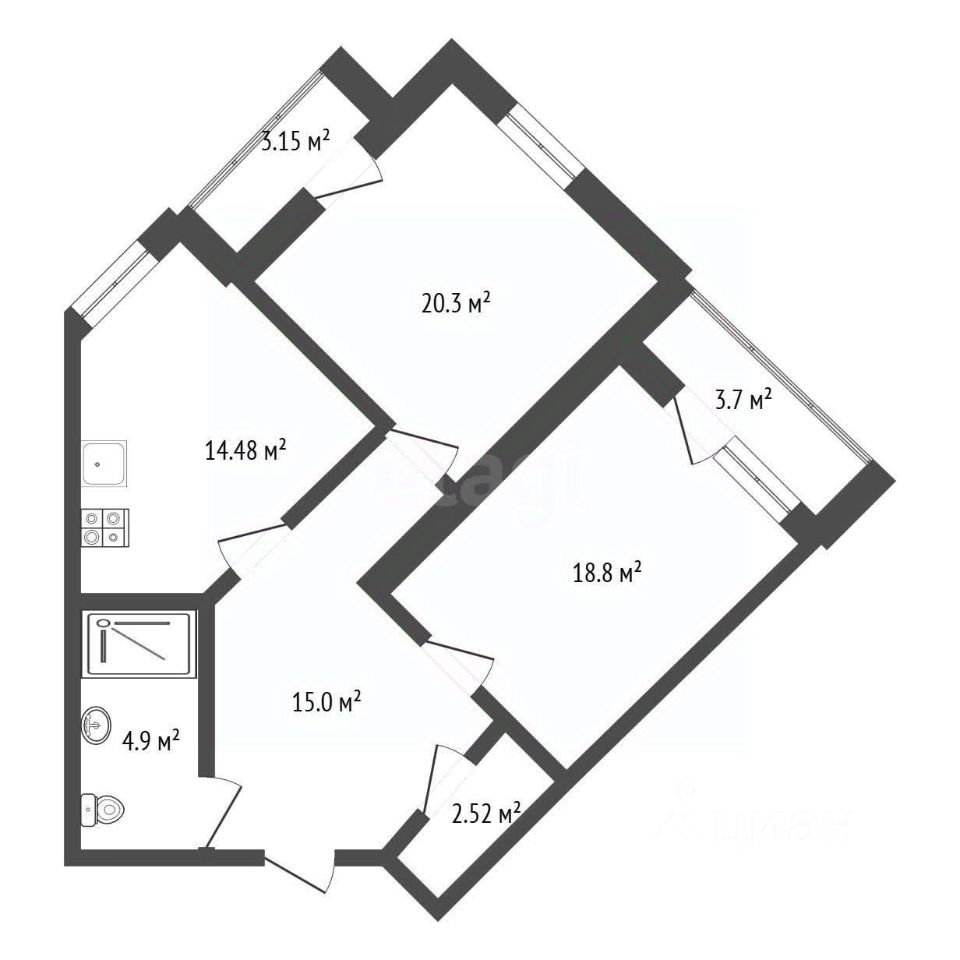 53 м² · Этаж 14 из 15