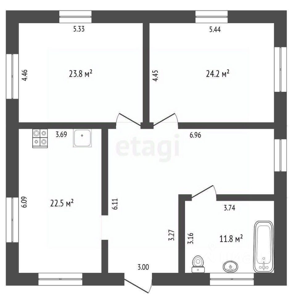 Предлагаем вам приобрести выгодно загородный дом с коммуникациями, с улучшенной черновой отделкой Электричество - столб у дома, вода - собственная скважина, септик установлен! Газ проходит по улицам, заявление на подключение подано! Водоснабжение: автономная скважина с водоочистной станцией и дополнительный фильтр с аргоном на кухне. Отопление: индивидуальный электрокотел, теплый водяной пол и два циркуляционных насоса тепло и комфорт в вашем доме. Канализация: индивидуальный септик из бетонных колец с канализационными выводами. Фундамент монолитная плита, стены из блока марки Д-500, облицованные прочным силикатным кирпичом. Четырехскатная крыша покрыта надежным ондулином, а утепленные перекрытия обеспечат тепло в холодное время года. Окна с тройным стеклопакетом, железная входная черновая дверь и черновая стяжка пола все готово для вашей индивидуальной отделки. Просторная кухня-гостиная (22 м²), две изолированные комнаты (26 и 16 м²) и котельная с санузлом (12 м²). Земельный участок 5 соток - ИЖС! МЫ ГАРАНТИРУЕМ ФИНАНСОВУЮ БЕЗОПАСНОСТЬ ДЛЯ НАШИХ КЛИЕНТОВ. Код пользователя: 61213 Номер в базе: 10489669