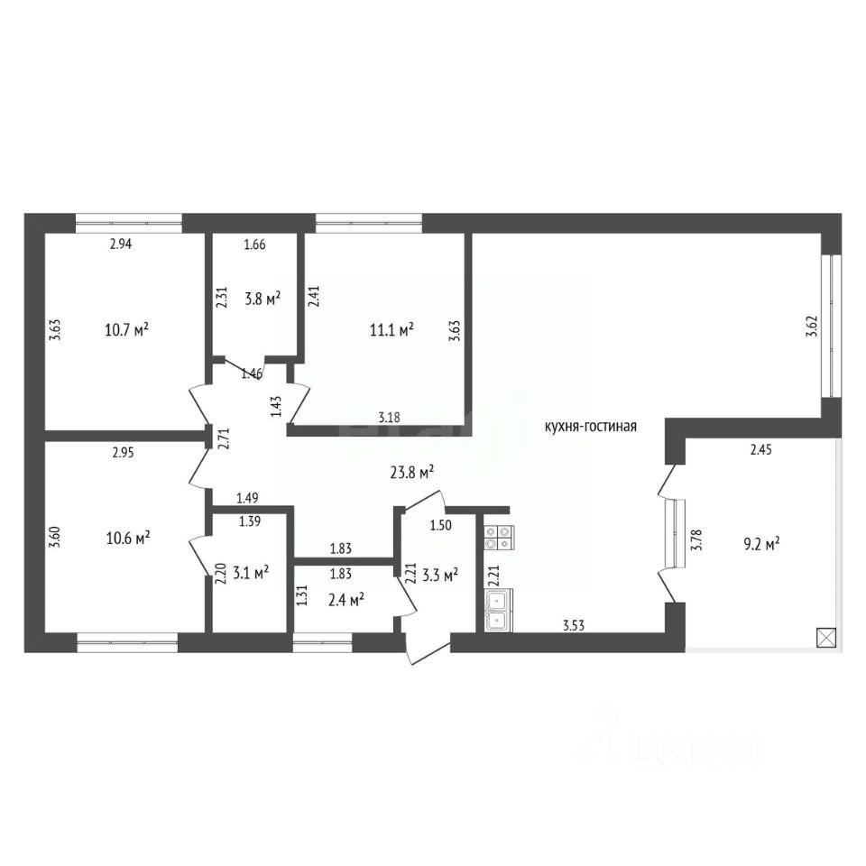 Дом 105 м² · 5.3 соток · 1 этаж