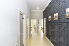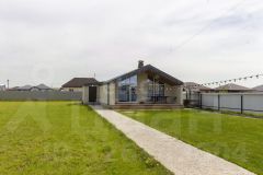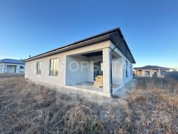 Продаётся современный одноэтажный коттедж из кирпича площадью 83,3 квадратных метра. Фундаментная плита имеет толщину 300 миллиметров. Здание расположено на земельном участке площадью 6,2 сотки, предназначенном для индивидуального жилищного строительства. В доме выполнена улучшенная чистовая отделка: стены и пол выровнены по маякам, проведена медная электропроводка, установлены сантехнические коммуникации, высота потолков составляет три метра.Коттедж включает: котельная, гостевой санузел, кухня-гостиная, 2 спальни. В котельной установлен электрический двухконтурный котёл. Водоснабжение осуществляется из скважины, канализация — септик. Земельный участок находится в собственности, он отсыпан и выровнен. Возможна постройка гаража размерами 64 и дополнительной парковки для второго автомобиля. Фасад дома отделан профнастилом. Приобретение возможно в ипотеку. Номер предложения: 25226.