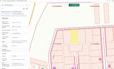 Данные получены с сайта ГИС Торги.- адрес (местоположение) Тюменская область, Тюменский район, д. Нариманова, - кадастровый номер 72:17:1502001:532, - площадь 1 899 кв.м, - разрешенное использование для индивидуального жилищного строительства, - категория земель земли населенных пунктов, - территориальная зона зона застройки индивидуальными жилыми домами (Ж1)