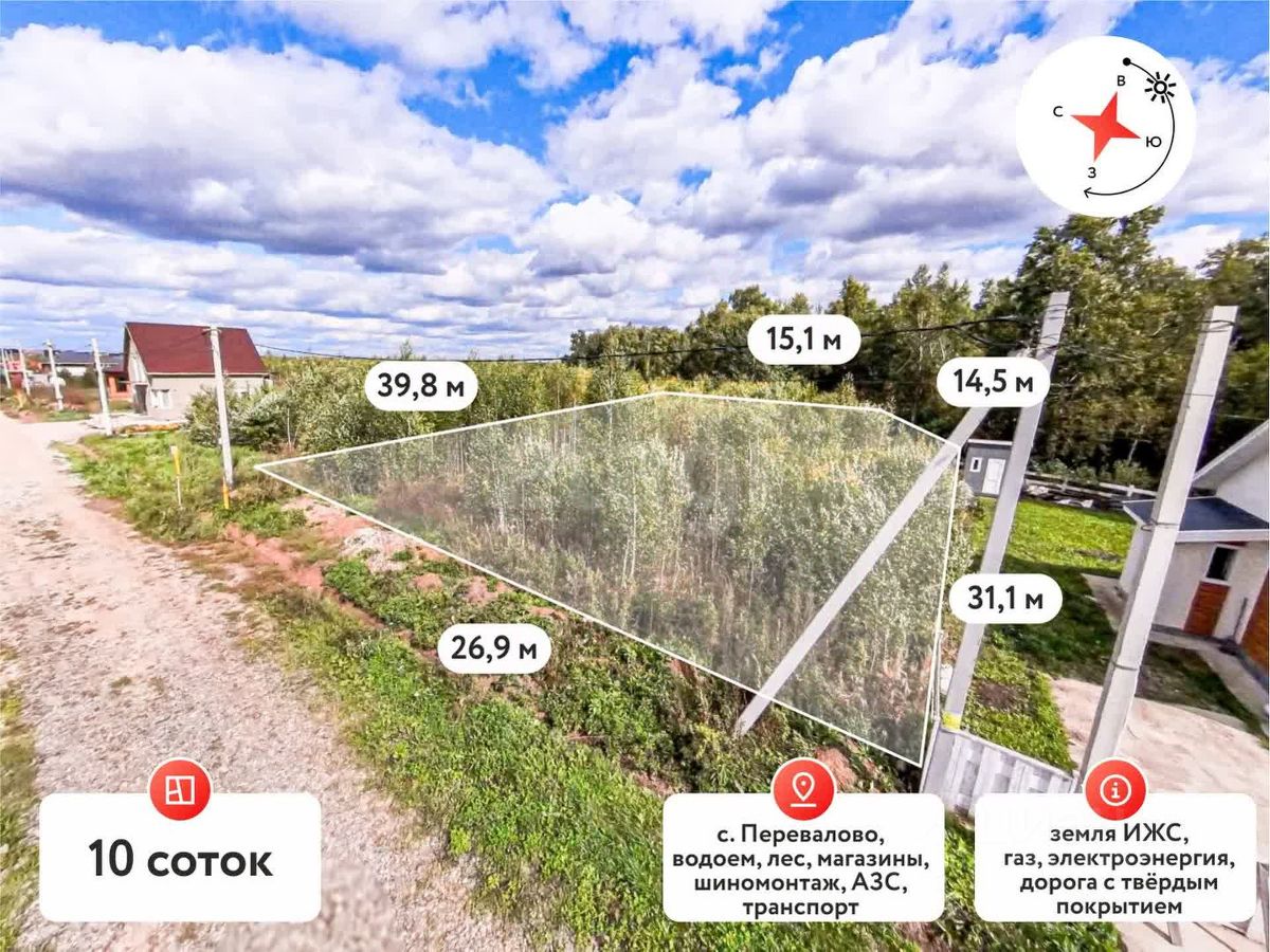 Продам земельный участок в село Перевалово, Московский тракт на 10 соток, где уже можно строить дом для жизни. Отличный вариант для дачи со своим огородом и оранжереей. Рядом находится коттеджный посёлок ''Зубарео Hills'' класса бизнес. Отличительные черты поселка - единая архитектура и проведенные коммуникации. До посёлка ходит городской автобус номер 109. На земельный участок проведен электрический столб. Дорога к самому участку грунт. Рядом есть уже строящиеся соседи. В пешей доступности лесная полоса с речкой. То есть полное соединение с природой в 10-и минутах от дома. Звоните, показ в любое время. МЫ ГАРАНТИРУЕМ ФИНАНСОВУЮ БЕЗОПАСНОСТЬ ДЛЯ НАШИХ КЛИЕНТОВ. Код пользователя: 60333 Номер в базе: 1709085