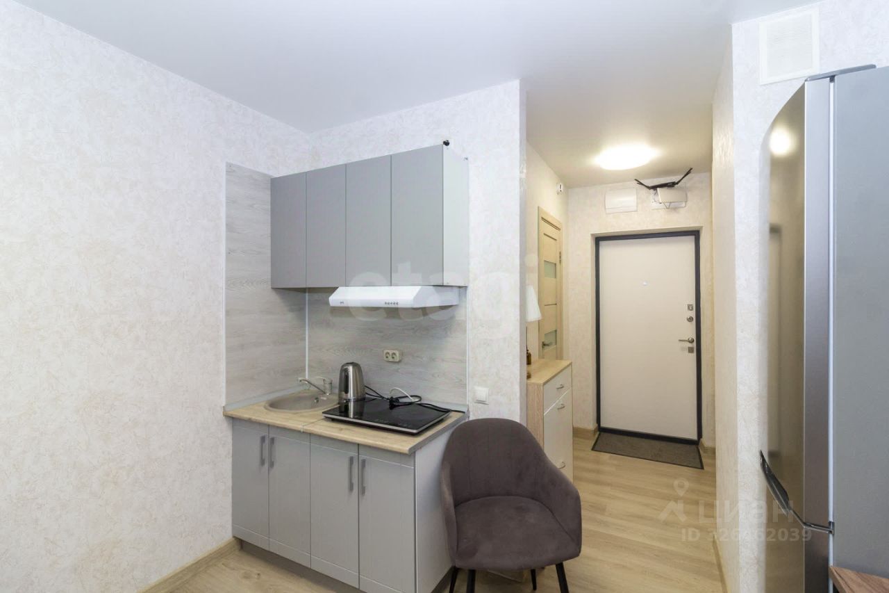 Сдаётся уютная студия площадью 34 кв. м на 18 этаже современного 22-этажного дома, построенного в 2016 году. Высокие потолки 2.7 метра и наличие лоджии создают ощущение простора и комфорта. Из окон открывается вид на город, что добавляет естественного освещения и уюта.Квартира после косметического ремонта, что обеспечивает свежесть и чистоту. В студии есть вся необходимая мебель как на кухне, так и в комнате. Для вашего удобства в квартире установлены холодильник, телевизор и стиральная машина. Совмещённый санузел оборудован ванной.Дом оборудован пассажирским и грузовым лифтами, что удобно для переезда и повседневной жизни. На первом этаже есть пандус, поэтому можно комфортно перемещаться с детской коляской или велосипедом. Для автомобиля предусмотрена наземная парковка за шлагмаумомРайон отлично развит: в шаговой доступности находятся школы, детские сады, клиники и магазины. Это делает квартиру идеальным вариантом для семей с детьми. Хорошая транспортная доступность позволяет быстро добраться до нужных точек города.Условия аренды: оформление через агентство. Гарантирую юридическую чистоту сделки. Рассматриваются арендаторы с детьми или без. Торг обсуждается при осмотре. Заселение с 15 февраля, смотреть и оформляться можно раньше Записывайтесь на просмотр, чтобы лично оценить все преимущества этой квартиры. Мы будем рады ответить на все ваши вопросы и помочь с оформлением аренды.Предоплата за 1 месяц