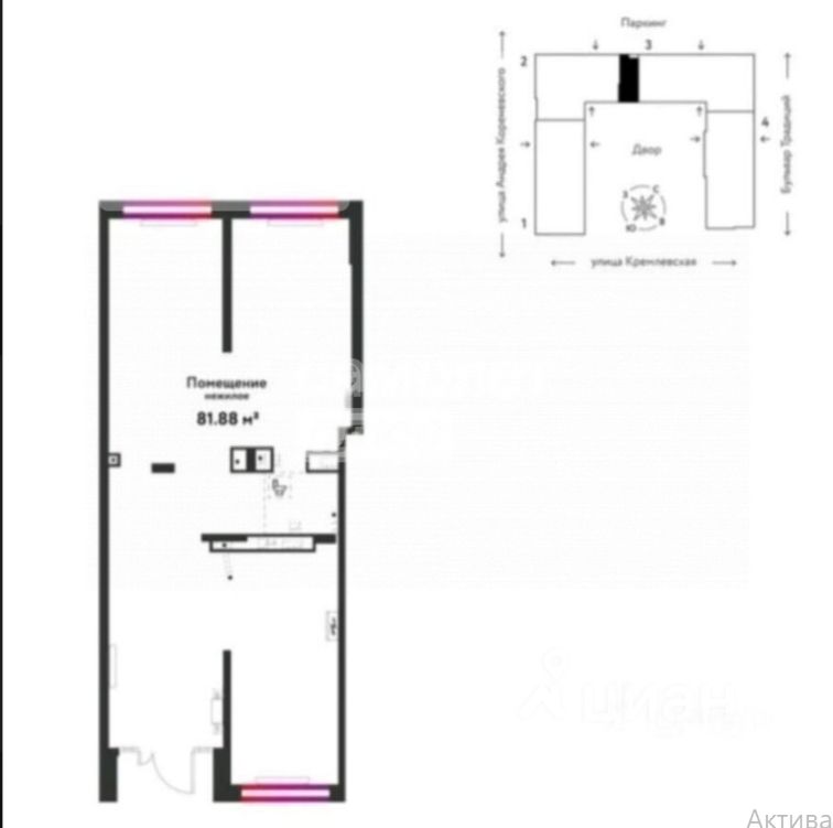 Универсальное коммерческое помещение в центре Тюмени — ваш бизнес начнётся с идеального адреса! Адрес: г. Тюмень, ул. Орджоникидзе, 65/3 (1 этаж) Площадь: 84,5 м² — 2 просторные комнаты/залы для клиентов — Большое подсобное помещение (склад/бэк-офис) — Санузел — Тамбур при входе Статус: после банка — отличная основа для адаптации под ваш формат! Почему это выгодная возможность? Престижное расположение — центр города, напротив ЦУМа! Высокая проходимость, плотный трафик и узнаваемый адрес привлекают клиентов сами по себе. Готовая инфраструктура — основа для быстрого старта: — Электричество до 15 кВт, вода, полноценный санузел — Стены и напольное покрытие (плитка/кафель) в хорошем состоянии — Сигнализация и кондиционеры уже установлены — Круглосуточный доступ (по согласованию) Удобство для клиентов: — Уличная гостевая парковка с зоной быстрых визитов — Первый этаж — максимальная видимость и доступность Сильное коммерческое окружение: в здании работают пекарня, обувной магазин, зоомагазин, ателье, КДЛ — стабильный поток посетителей обеспечен! Идеально подойдёт для: • Отделения банка • Пункта выдачи заказов (ПВЗ) • Бьюти-студии, салона красоты • Клиентского офиса или представительства • Аптеки • Розничного магазина или шоурума • Медицинских услуг (при соблюдении профильных норм) Помещение после банка — потребуется косметический ремонт и адаптация под вашу концепцию. Это преимущество: вы создадите пространство именно таким, каким задумали! Условия: • Договор аренды — с юридическим лицом • Коммунальные платежи — по счётчикам (прозрачно) • Обеспечительный платёж — 1 месяц аренды • Комиссия агента - 50% • Арендные каникулы — возможны для подготовки помещения (обсуждается индивидуально!) • Предоплата - не предусмотрена • Срок аренды - от 11 мес. Прошу обратить внимание: Циан не дает возможности не заполнять поля, подробные условия аренды, указаны выше. Забронируйте просмотр уже сегодня! Увидите потенциал помещения своими глазами и оцените преимущество локации — в центре Тюмени такие площади появляются редко. Правильный адрес — половина успеха. Вторую половину создадите вы!