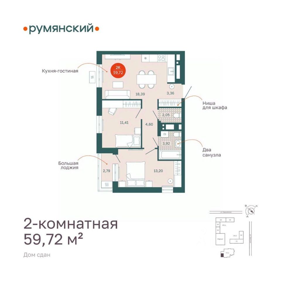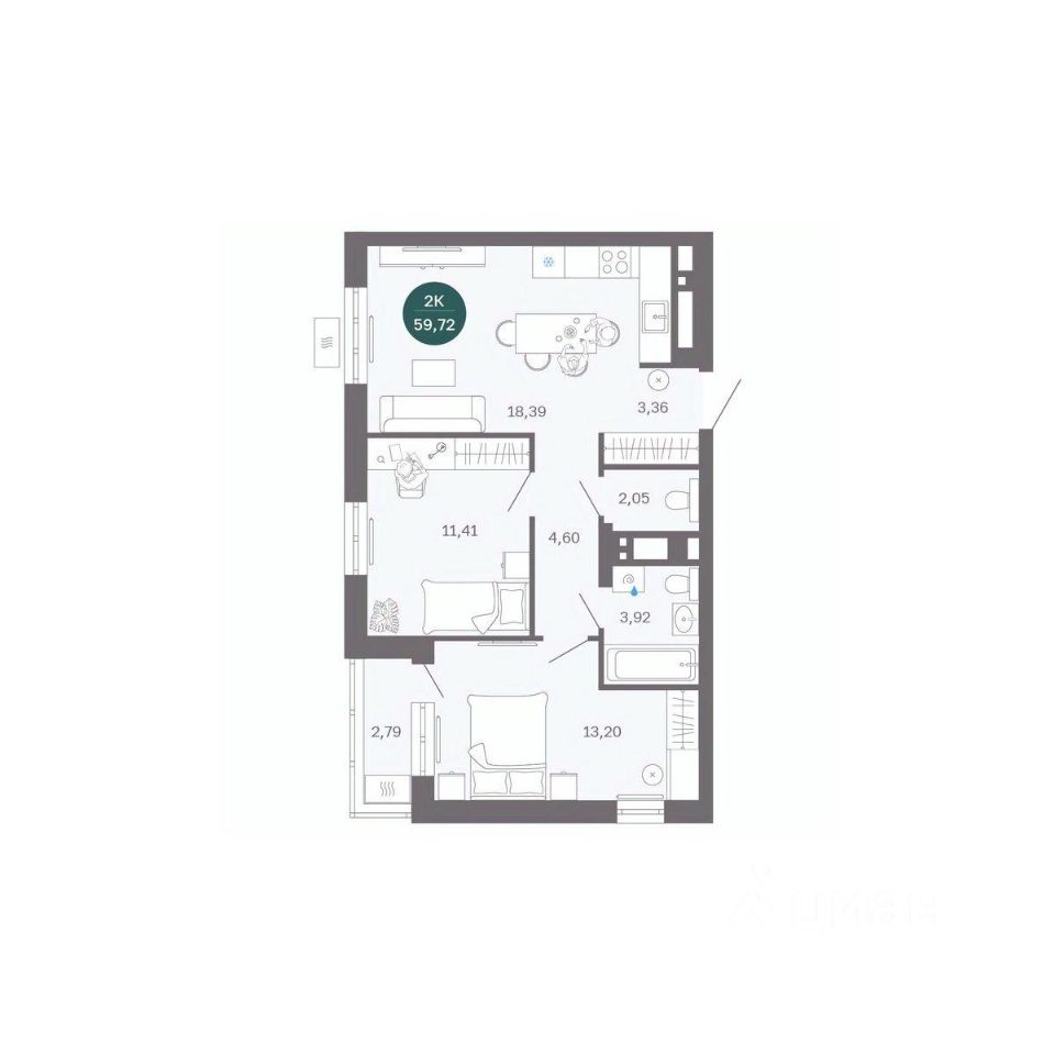 Общая площадь59,75 м2