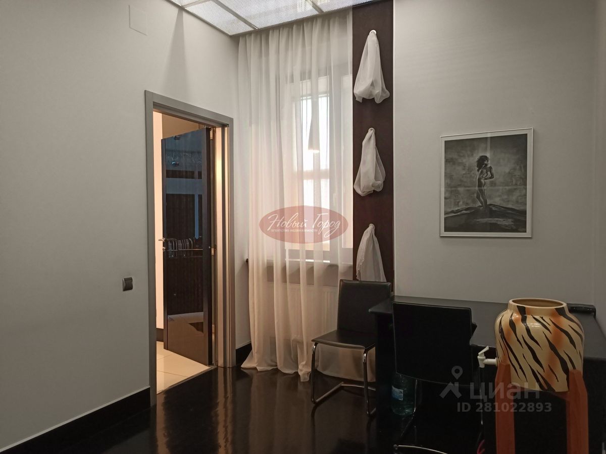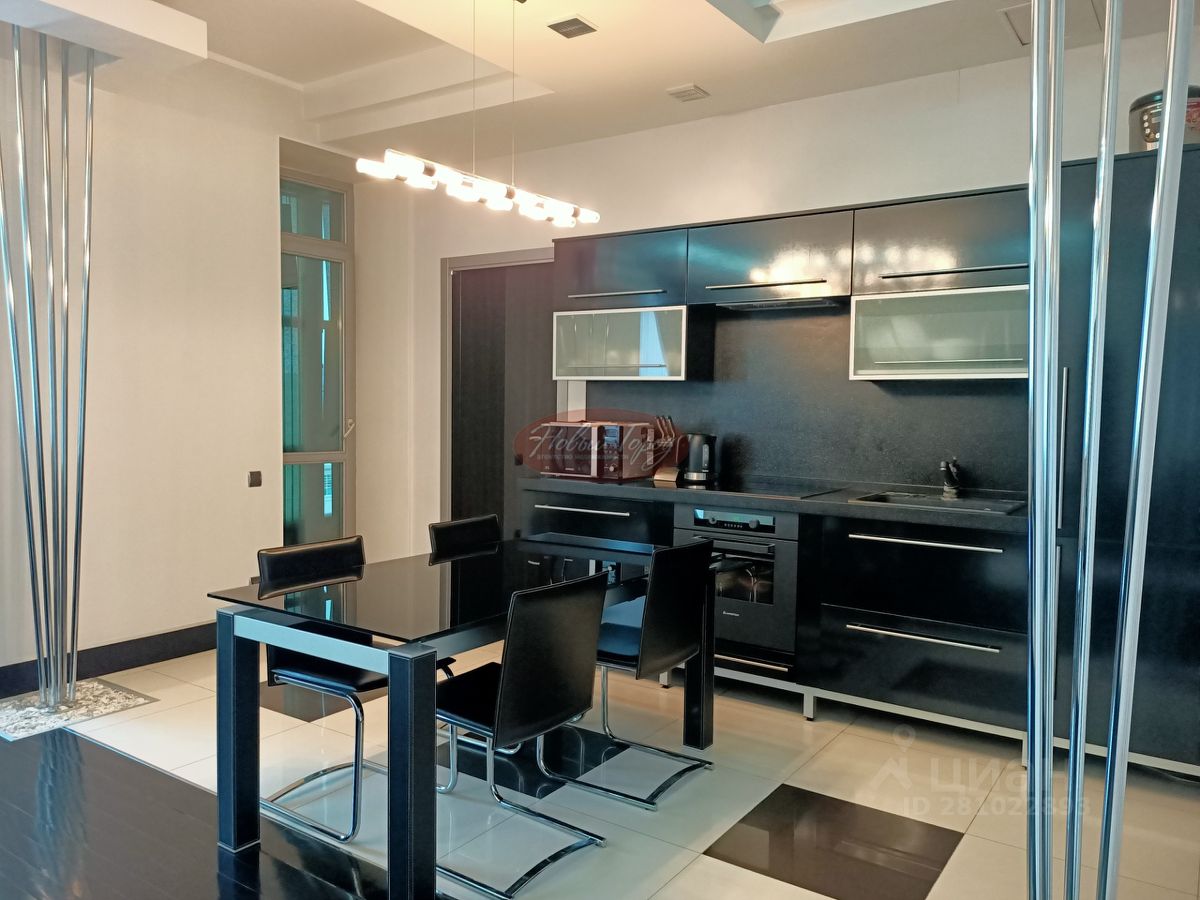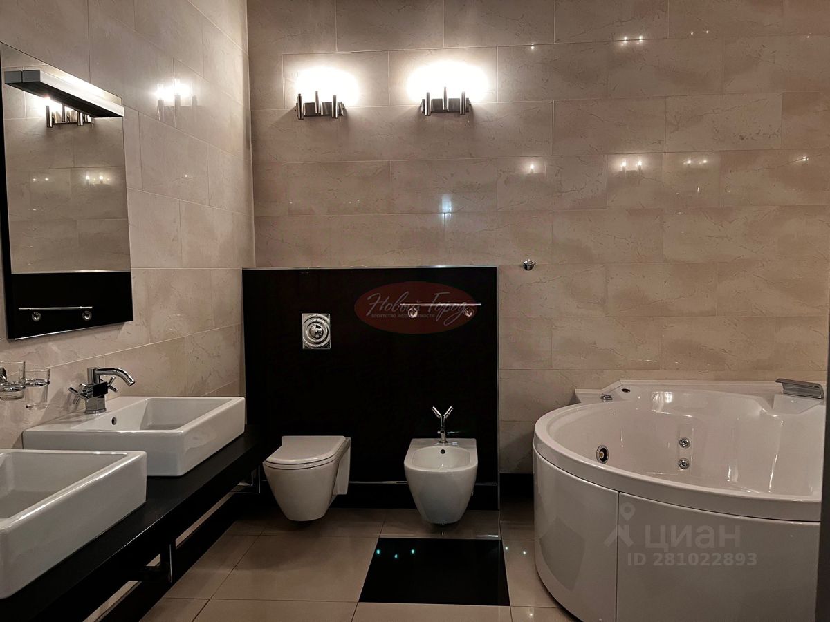 В гостевой зоне находится кухня-гостиная, кабинет, гостевой санузел. Спальня с большой гардеробной и ванной комнатой. Высокие потолки.