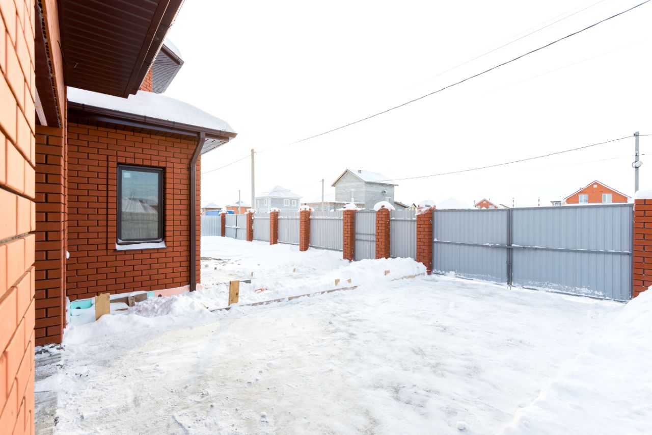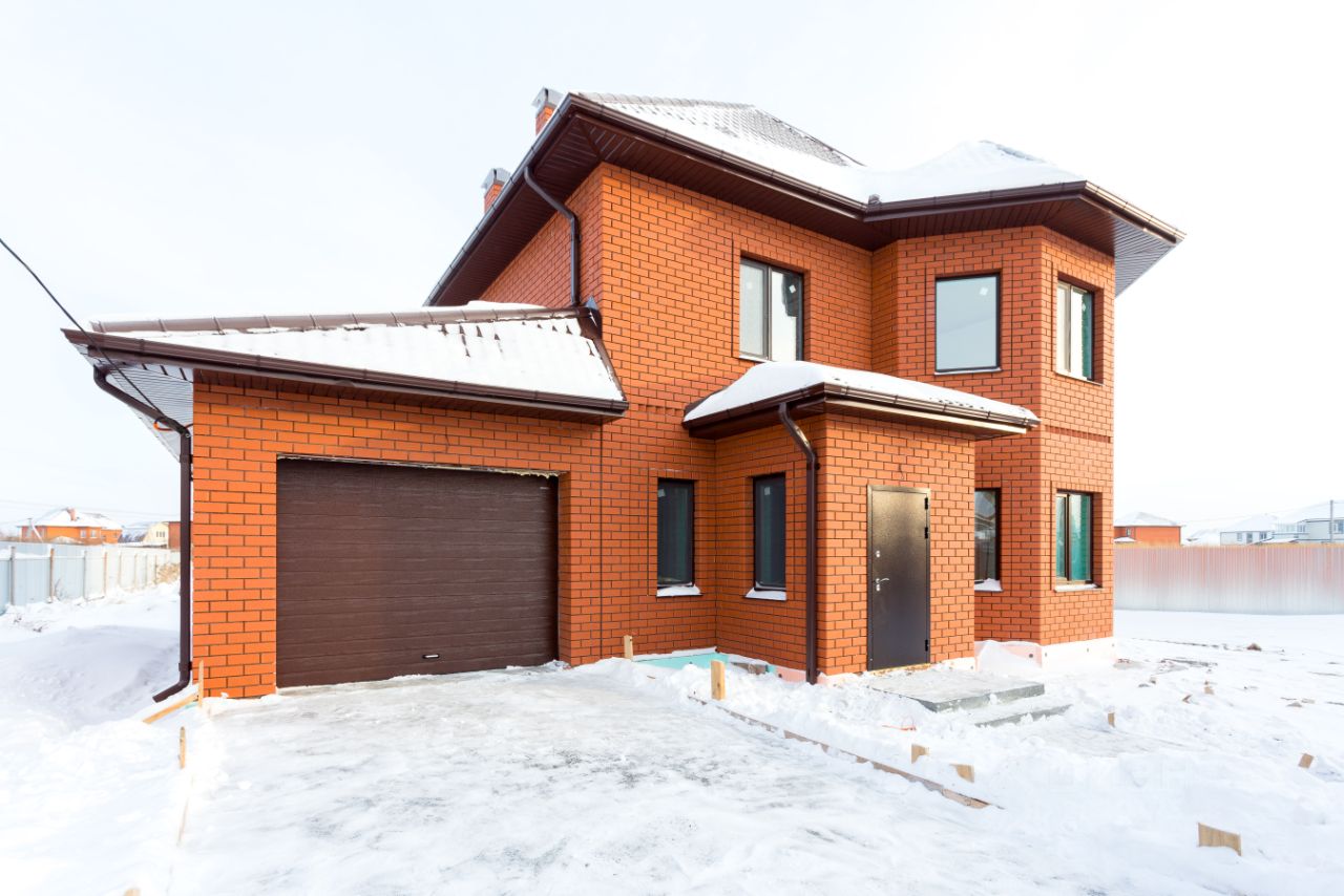 Дом построен по ул. Футбольный,3 центральная часть города Тюмени. Фасад дома отделан кирпичом благородных натуральных оттенков. Стены дома выполнены из керамзитоблока толщиной 40 см. Утеплитель: облицовочный керамический кирпич.