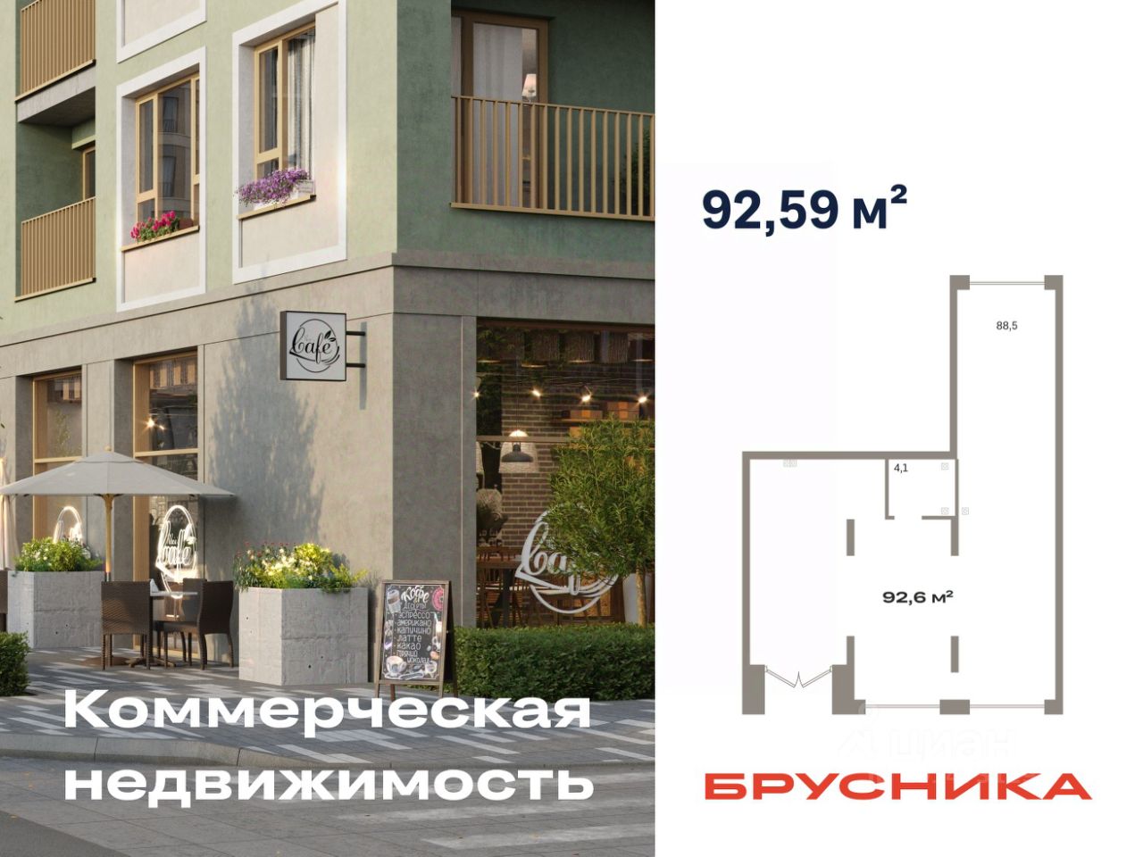 Помещение свободного назначения на 1 этаже, общая площадь 92.59 кв.м., без отделки. Стоимость помещения 19,000,000 руб., цена за кв.м 205,205 руб.