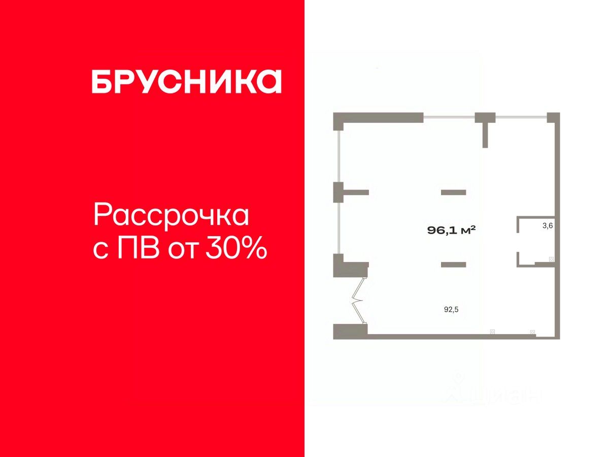 Помещение свободного назначения на 1 этаже, общая площадь 96.07 кв.м., без отделки. Стоимость помещения 19,710,000 руб., цена за кв.м 205,162 руб.