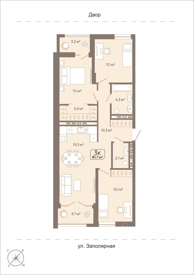 продам 3-к, Заполярная, 39 800 000 ₽