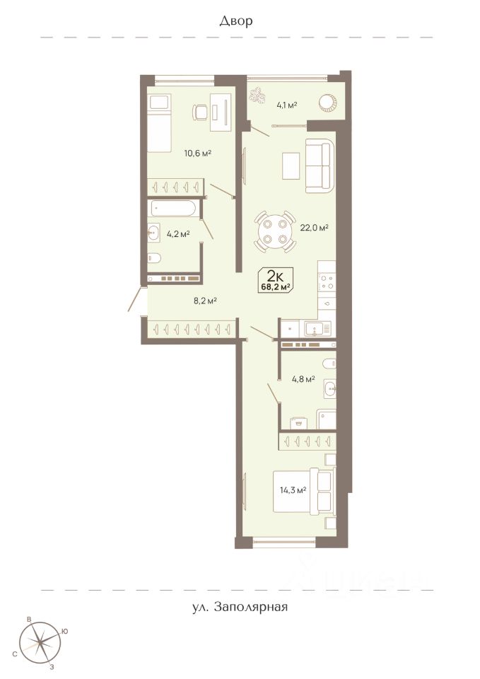 Общая площадь68,2 м2