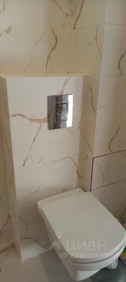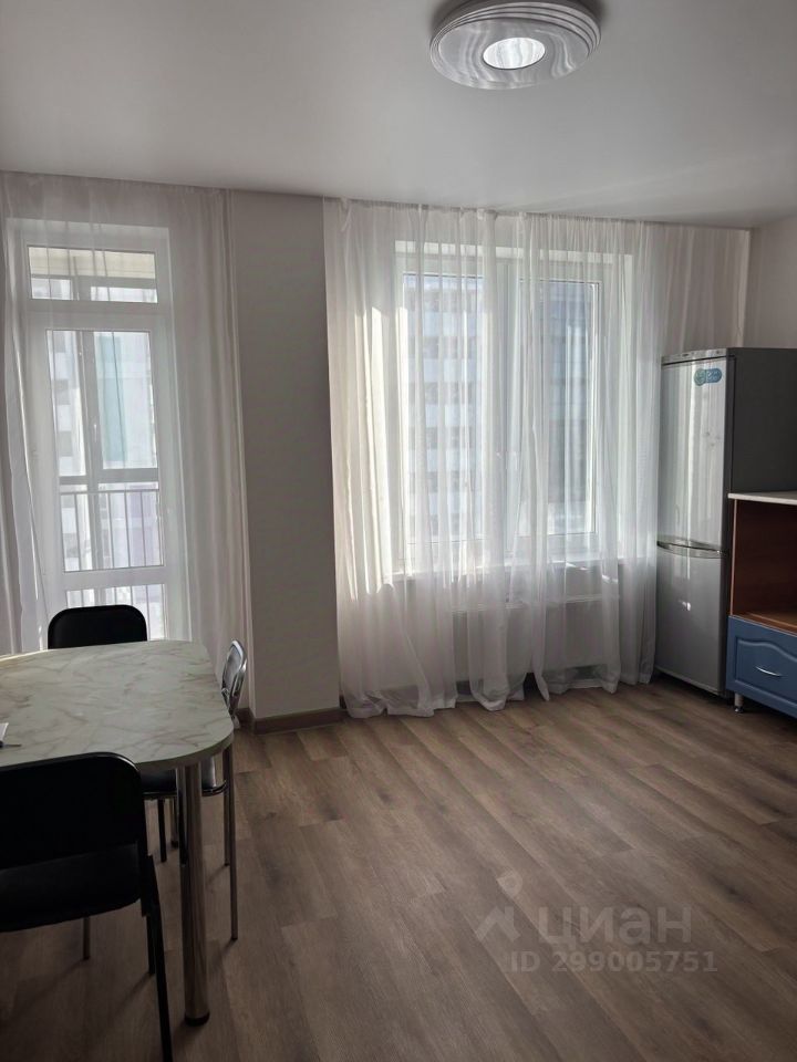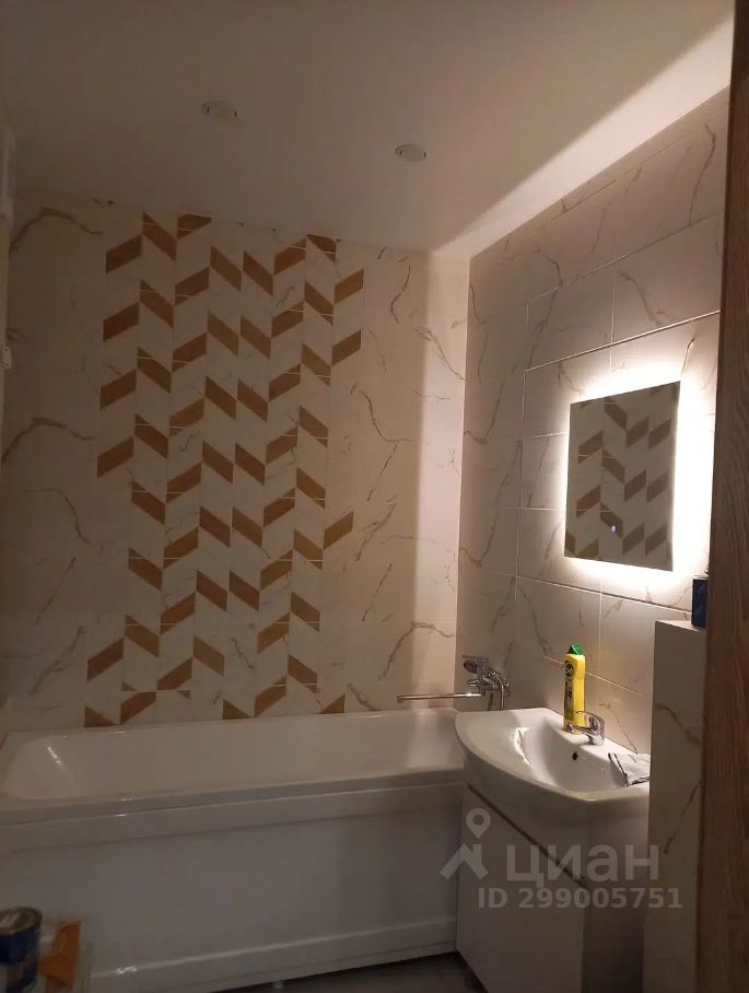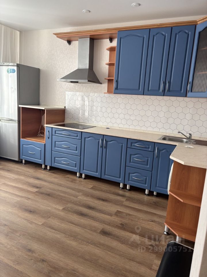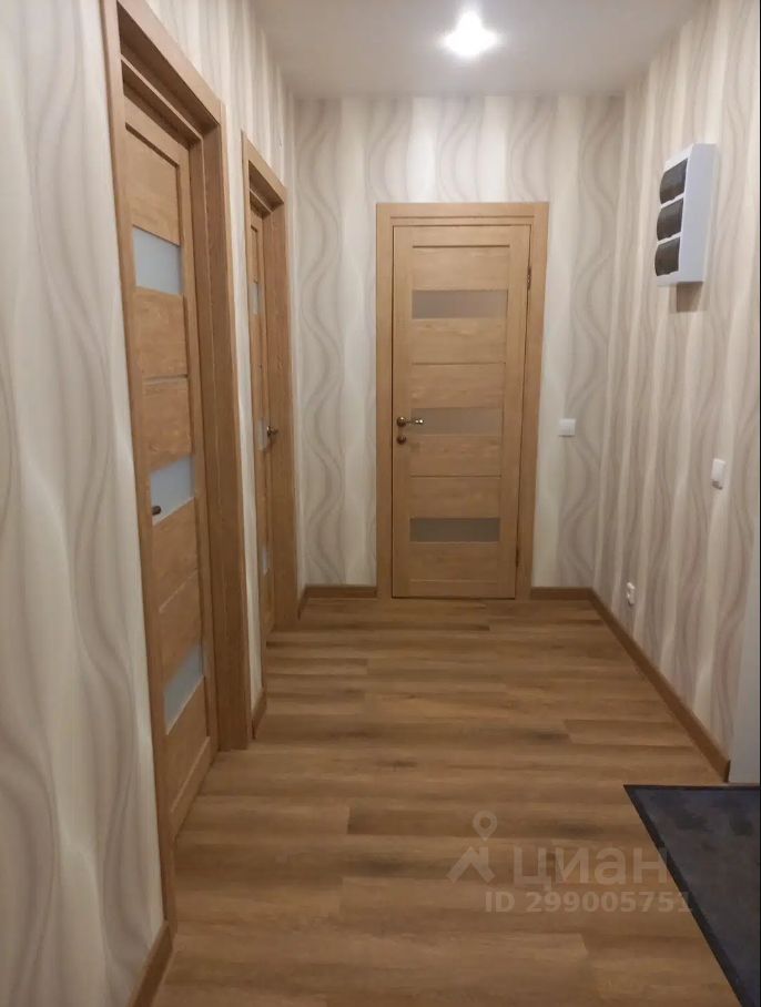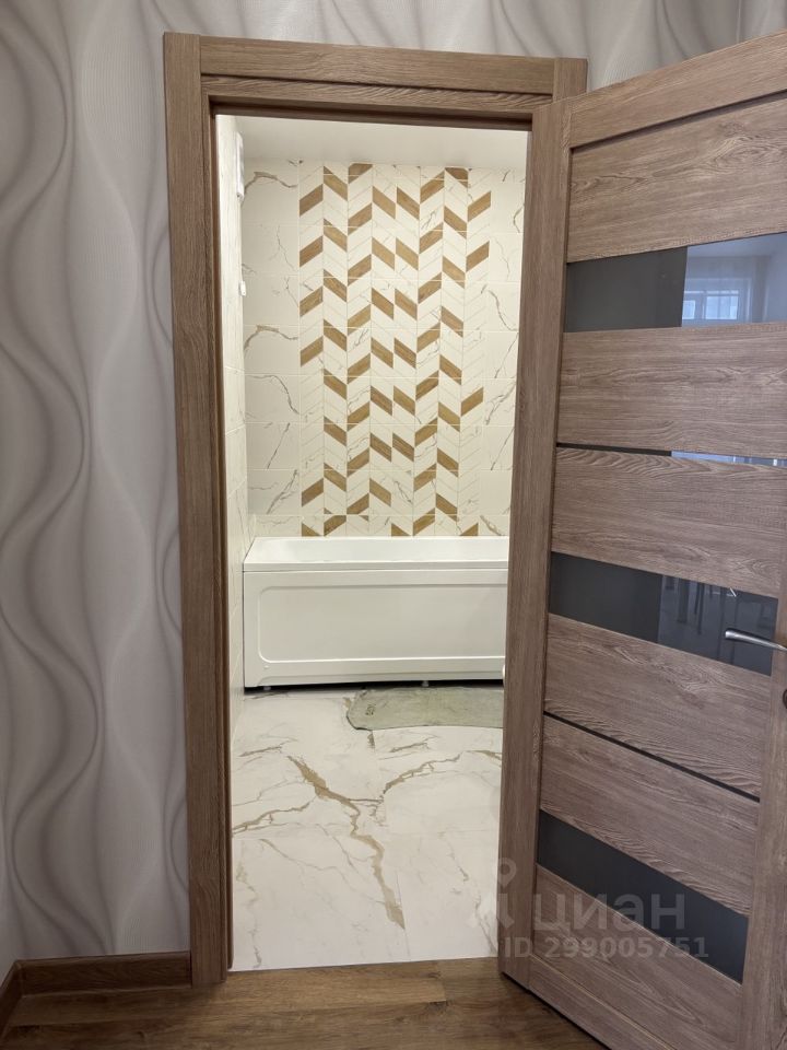 Квартира с ремонтом, санузел в кафеле, инсталляция, ванна, раковина на тумбе, зеркало. Стены выровнены. Кухня в светлом тоне (оттенок ближе к молочному), комната в спокойном синем оттенке, натяжной потолок с точечными светильниками, пол - ПВХ плитка замковое (не клеевая) на подложке, двери с магнитной защелкой. Большая лоджия, вид на Патрушево. 5 квартир на этаже, 2 лифта, колясочная, 2 детские площадки с обеих сторон дома.