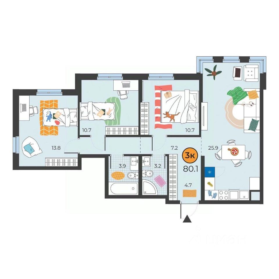 продам 3-к, Федюнинского, 313 748 573 ₽