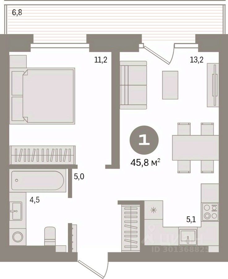 Общая площадь45,8 м2