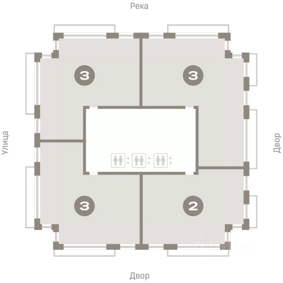 По мастер-плану здесь будет восемь домов. Ядро застройки составляют замкнутые кварталы переменной этажности. Их высотность понижается по мере приближения к реке. На углах участка мы разместили башни-доминанты.