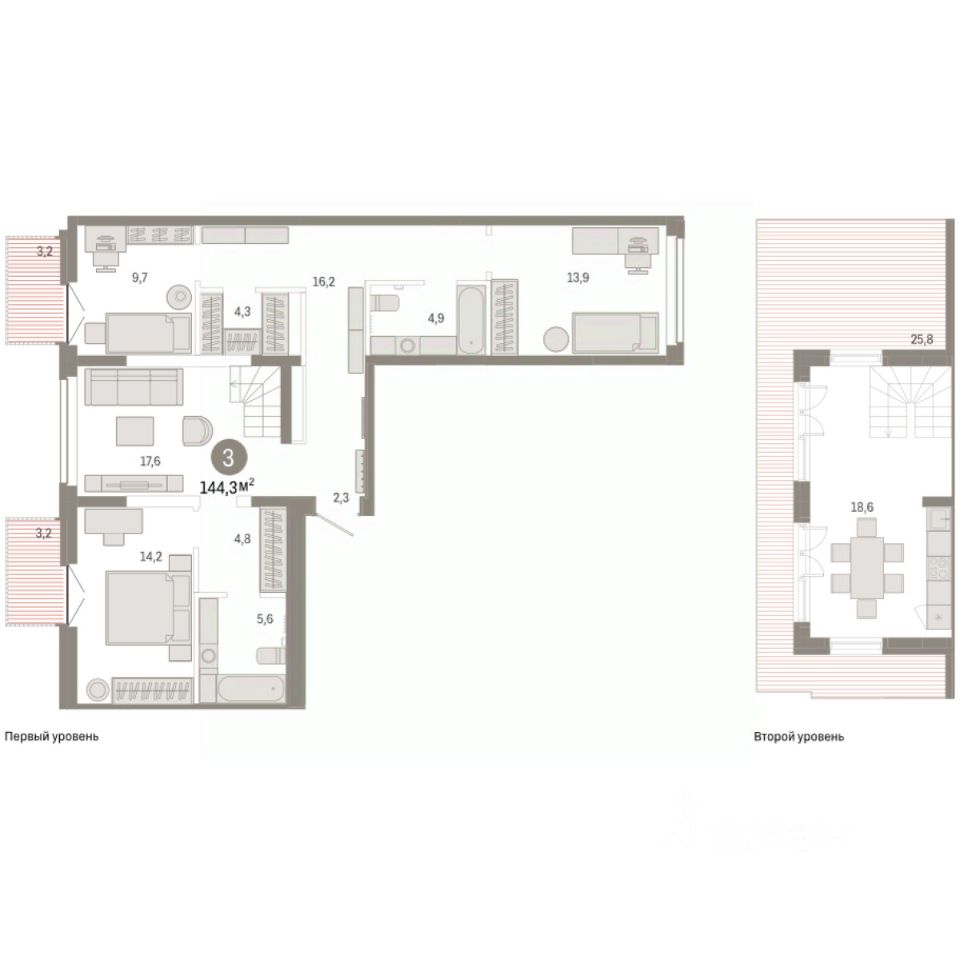 Просторная 3-комн. квартира с предчистовой отделкой в ЖК ''Республики 205'' на 7 этаже. Общая площадь: 144.28 кв.м. Высота потолков 2.7 м.