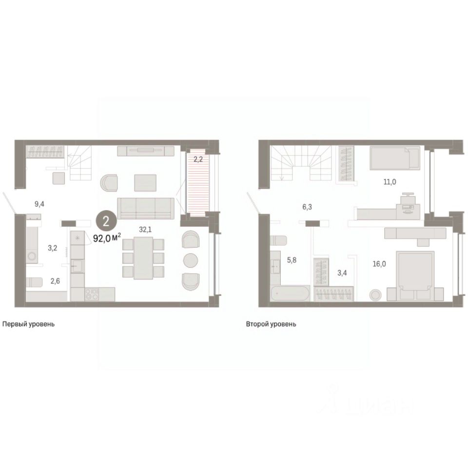 2-комн. квартира с предчистовой отделкой в ЖК ''Республики 205'' на 16 этаже. Общая площадь: 92.01 кв.м., жилая: 27 кв.м., площадь просторной кухни-гостиной: 32.1 кв.м. Комнаты изолированные, все окна выходят на одну сторону. В квартире одна лоджия, два совмещенных санузла. Высота потолков 2.7 м.