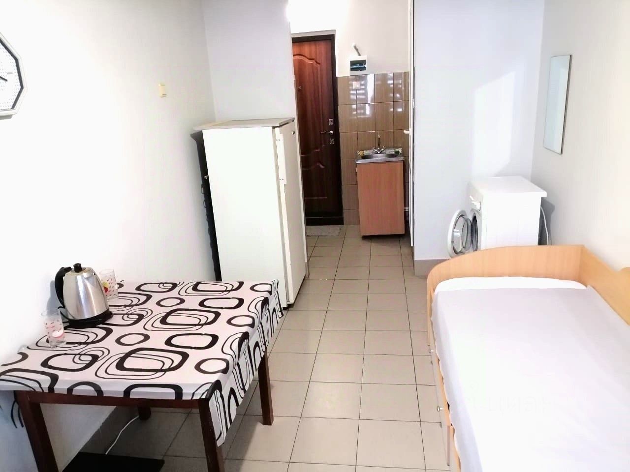 установлена см-автомат, кухня оборудована в прихожей.