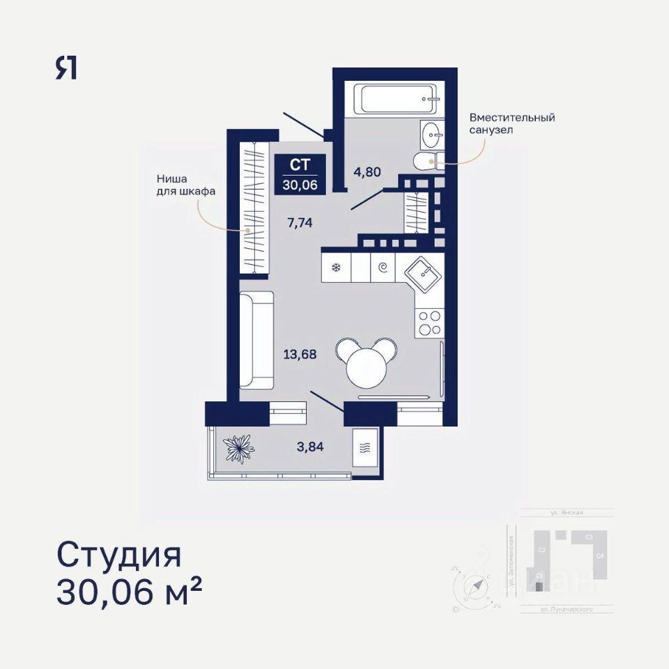 продам 1-к, Ямская, 29а8 820 000 ₽