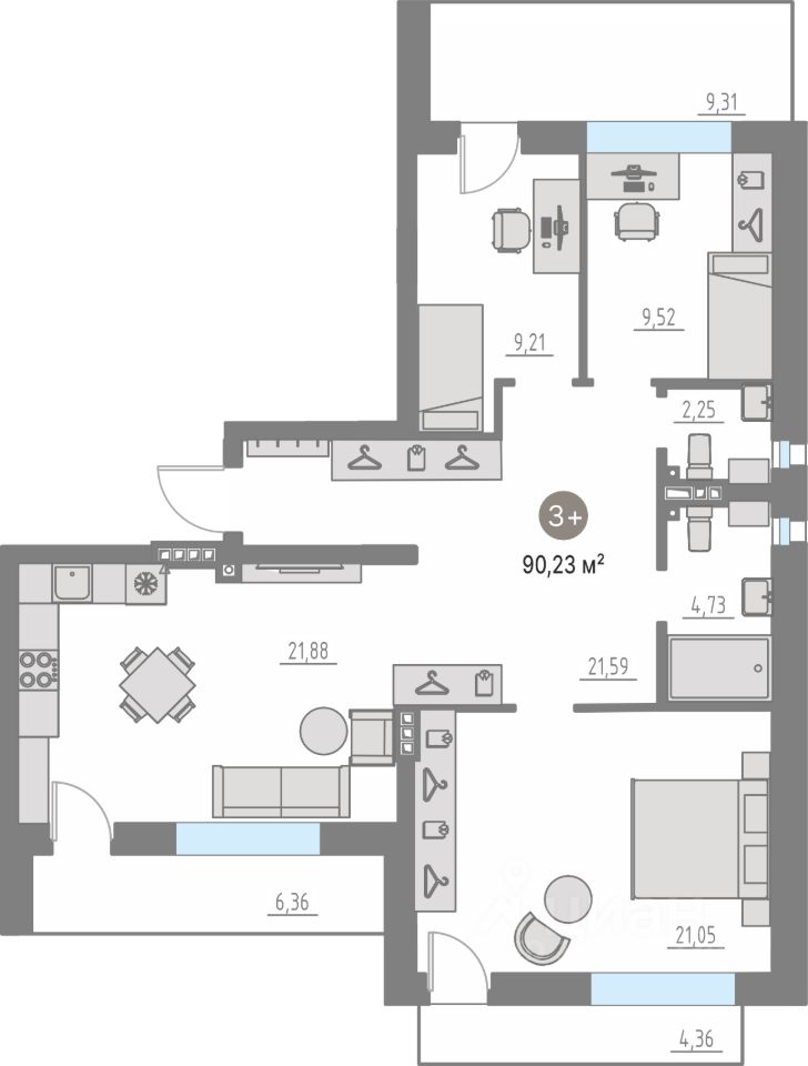Продаётся 3-комнатная квартира в сданном доме (Заповедных холмов, 13 (ГП-5)), срок сдачи: IV-кв. 2025, общей площадью 88.9 кв.м., на 4 этаже. Новый жилой комплекс ''Кипрея Квартиры'' от группы компании ''Новая земля Девелопмент'' расположен по адресу: Тюменская обл., с. Кулаково, по Ирбитскому тракту.