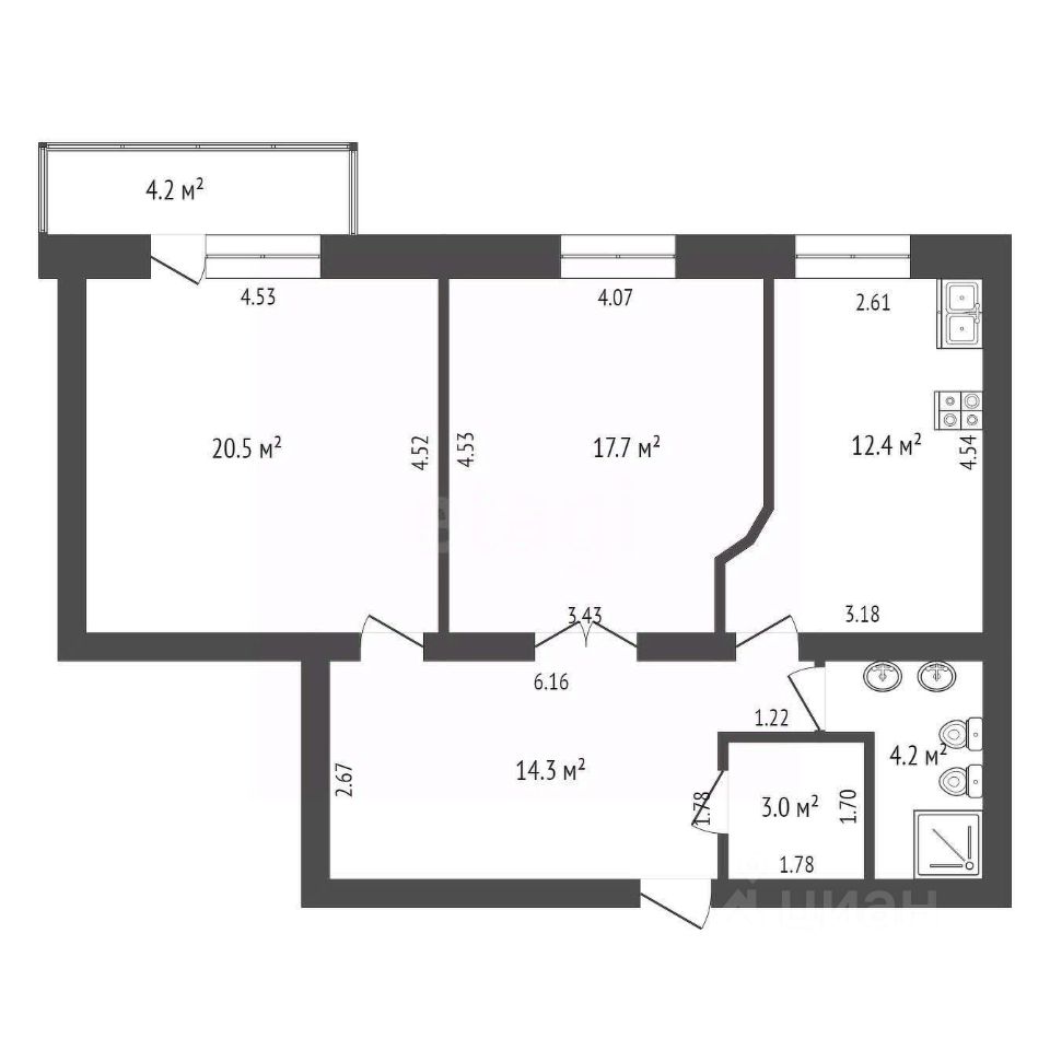 Продам приятную просторную двухкомнатную квартиру, площадью 72,1 кв.м. в кирпичном доме в Тюменском микрорайоне.