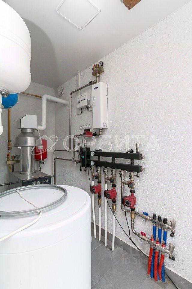 Стены дома возведены из керамзитового блока с качественным утеплением, а снаружи они украшены стильной декоративной штукатуркой. Внутренний климат всегда будет комфортным благодаря водяным тёплым полам и радиаторам, регулируемым по каждому помещению. Котельная находится в бане, гарантируя полное спокойствие и тишину внутри.