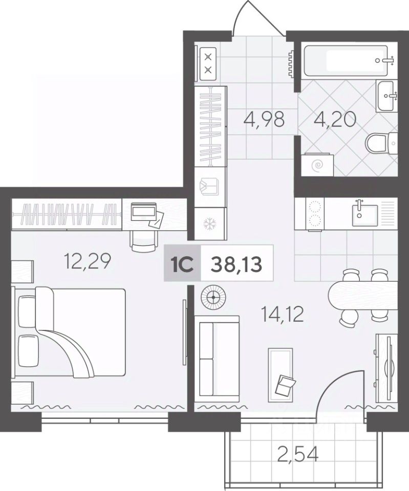 Уютная однокомнатная квартира 38.13 кв.м на 4 этаже. Функциональная планировка позволяет удобно организовать быт, а кухня-гостиная подойдёт для отдыха и общения.