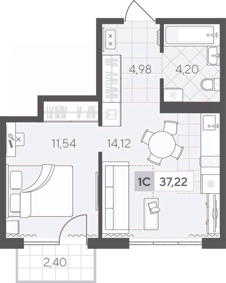 Уютная однокомнатная квартира 37.24 кв.м на 3 этаже. Функциональная планировка позволяет удобно организовать быт, а кухня-гостиная подойдёт для отдыха и общения.