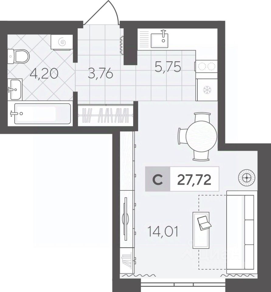 Студия площадью 27.72 кв.м на 2 этаже — функциональное пространство, которое можно адаптировать под любые потребности. В этой квартире легко создать уютный уголок для отдыха и работы.