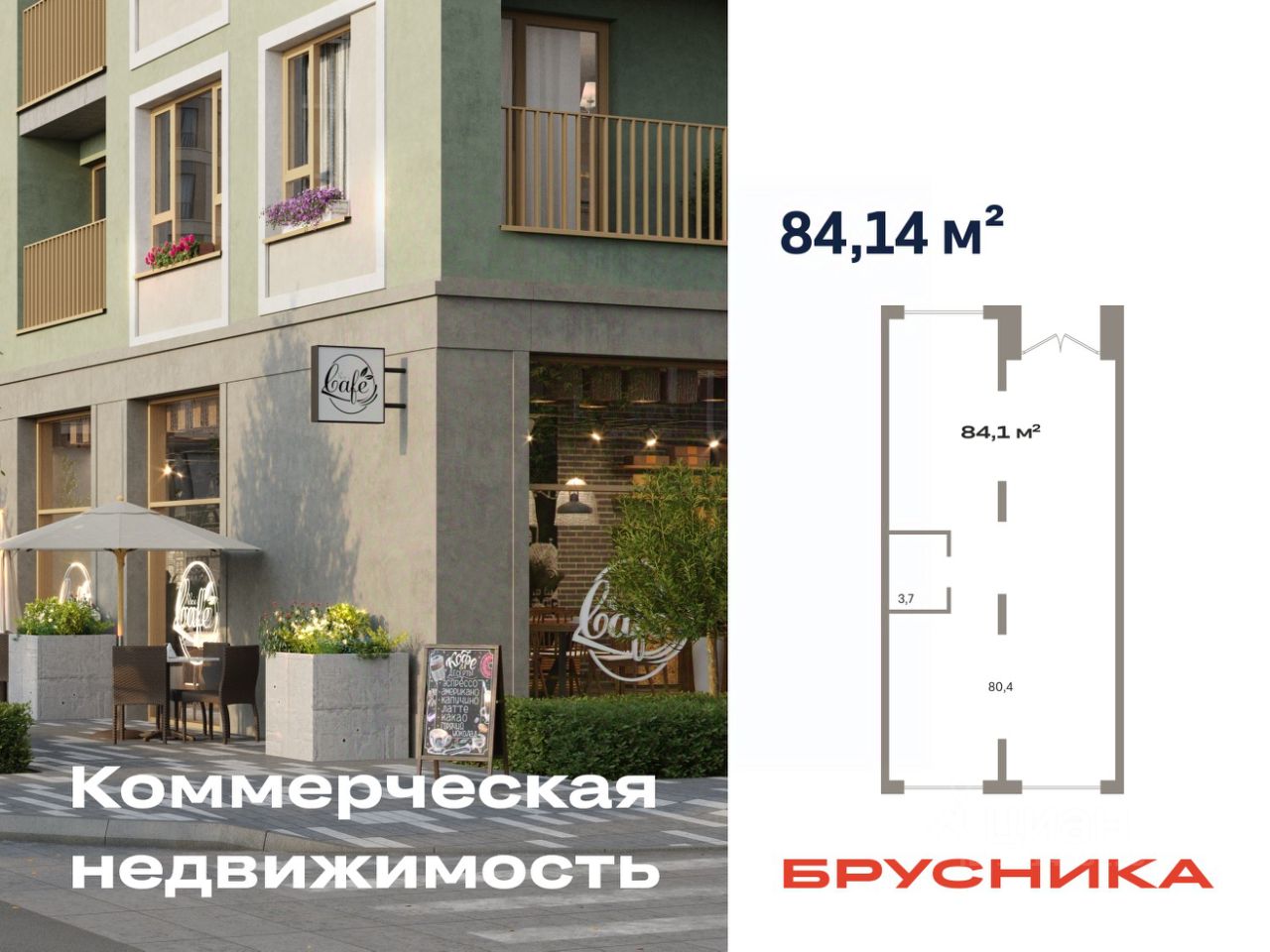 Помещение свободного назначения на 1 этаже, общая площадь 84.14 кв.м., без отделки. Стоимость помещения 19,170,000 руб., цена за кв.м 227,834 руб.