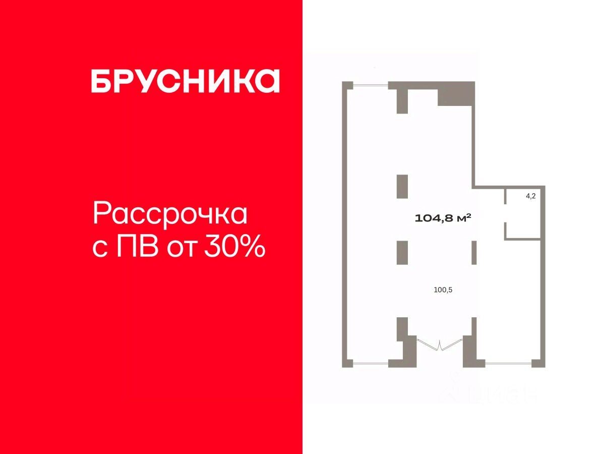 Помещение свободного назначения на 1 этаже, общая площадь 104.75 кв.м., без отделки. Стоимость помещения 23,670,000 руб., цена за кв.м 225,966 руб.