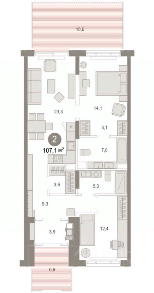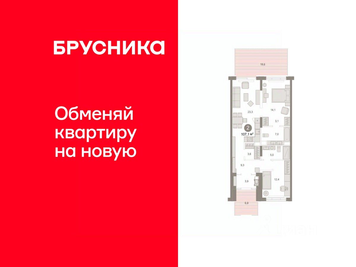 Квартира с кухней-гостиной и двумя спальнями в Октябрьском на Туре. Особенности планировки: отдельный вход, разнесённые спальни, свободная планировка, терраса на крыше. квартиры в нашей базе: ОКТ09-Ж6.1.2.