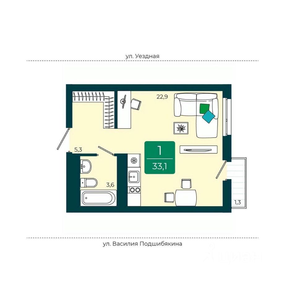 продам 1-к, Андрея Бушуева, 15 850 000 ₽