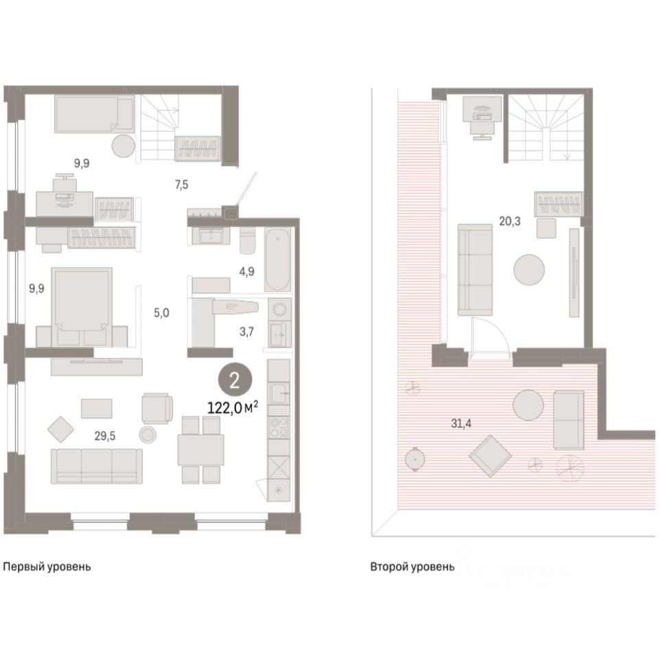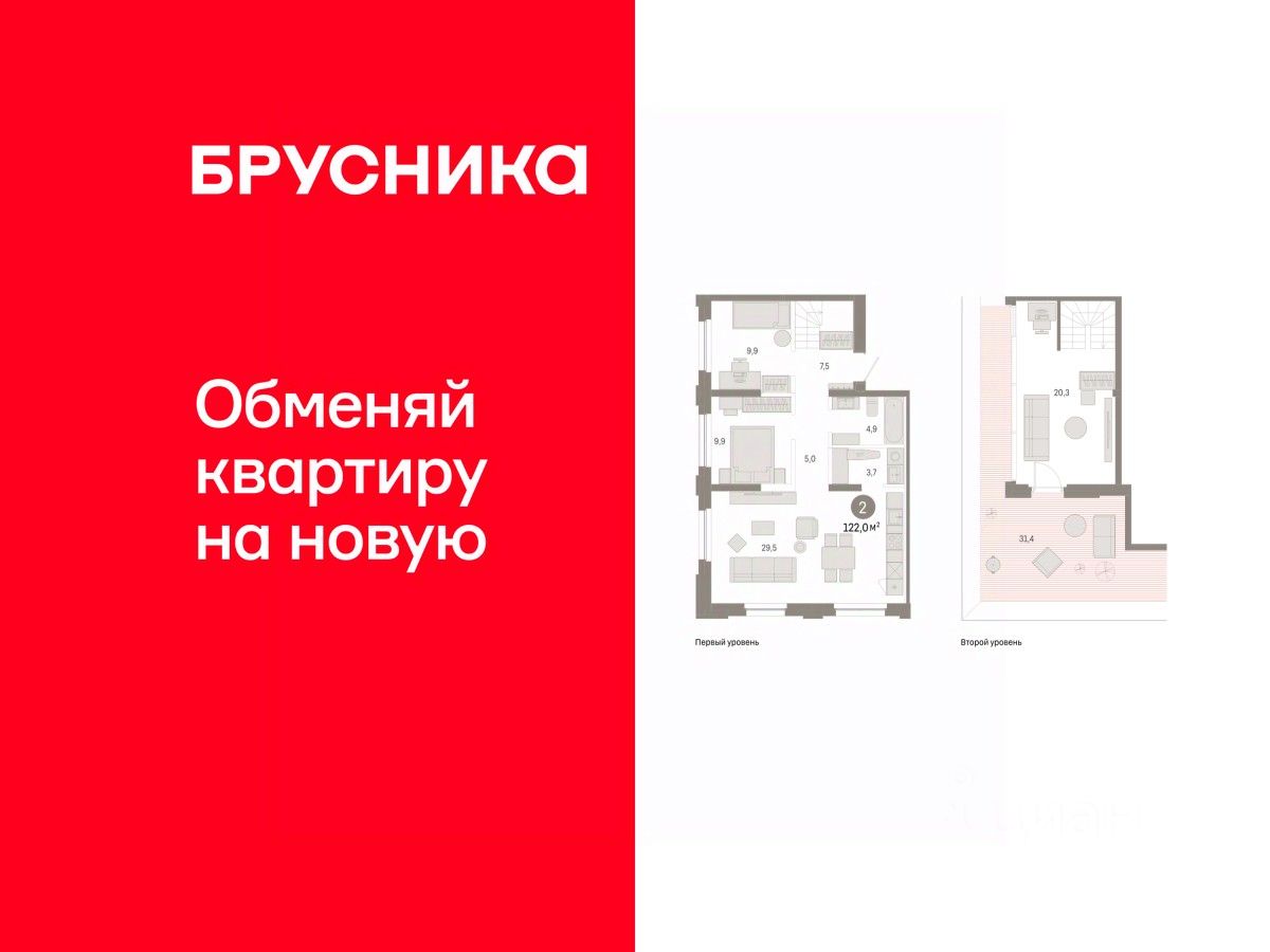 Двухуровневая квартира с кухней-гостиной и двумя спальнями в жилом районе ''Зарека''. Особенности планировки: двухуровневая, свободная планировка, терраса на крыше. квартиры в нашей базе: ЗРК05.2-Ж4.8.5.
