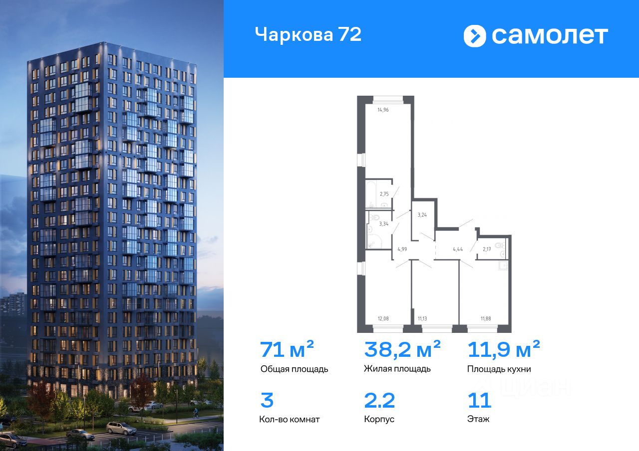Застройщик - Специализированный застройщик «Самолет-Чаркова», ООО. Проектная декларация опубликована на сайте наш.дом.рф
